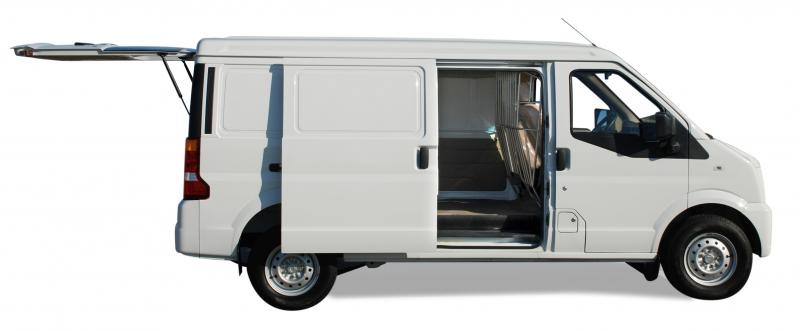 Dirección Hidráulica, motor 1400cc, una puerta lateral y portón trasero. Medidas de interior 2.600 mm/1.470 mm/1.280 mm (largo/ancho/alto), 2AIRBAG +ABS
