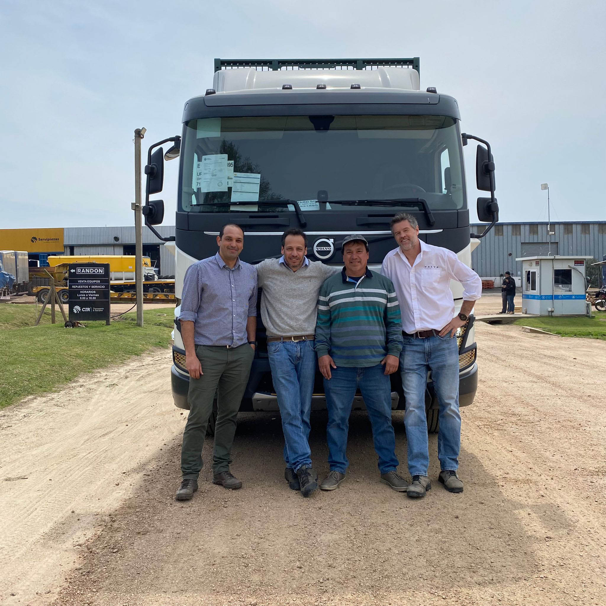Entrega de Volvo FMX 460 con Semirremolque Forestal CIR. En la foto se encuentran Paul Gallo de Mekatronic, Darío Rodríguez de Ruta Automóviles, Richard Sosa, propietario de la unidad, y Alejo Maisonnave, Gerente General CIR Transporte & Equipos.